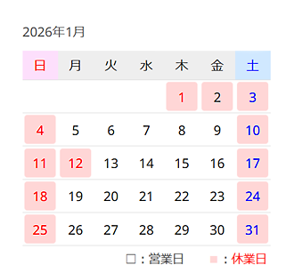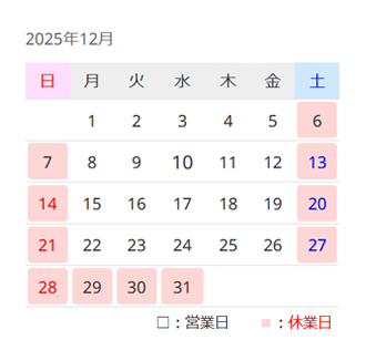 2025年12月27日(土)~2026年1月4日(日)までは冬期休業いたします。